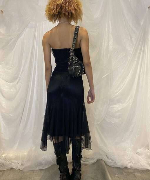 Keywords fairycore ethereal grunge rockstar girlfriend gossip girl tulle asymmetrical lettuce hem bandeau dress