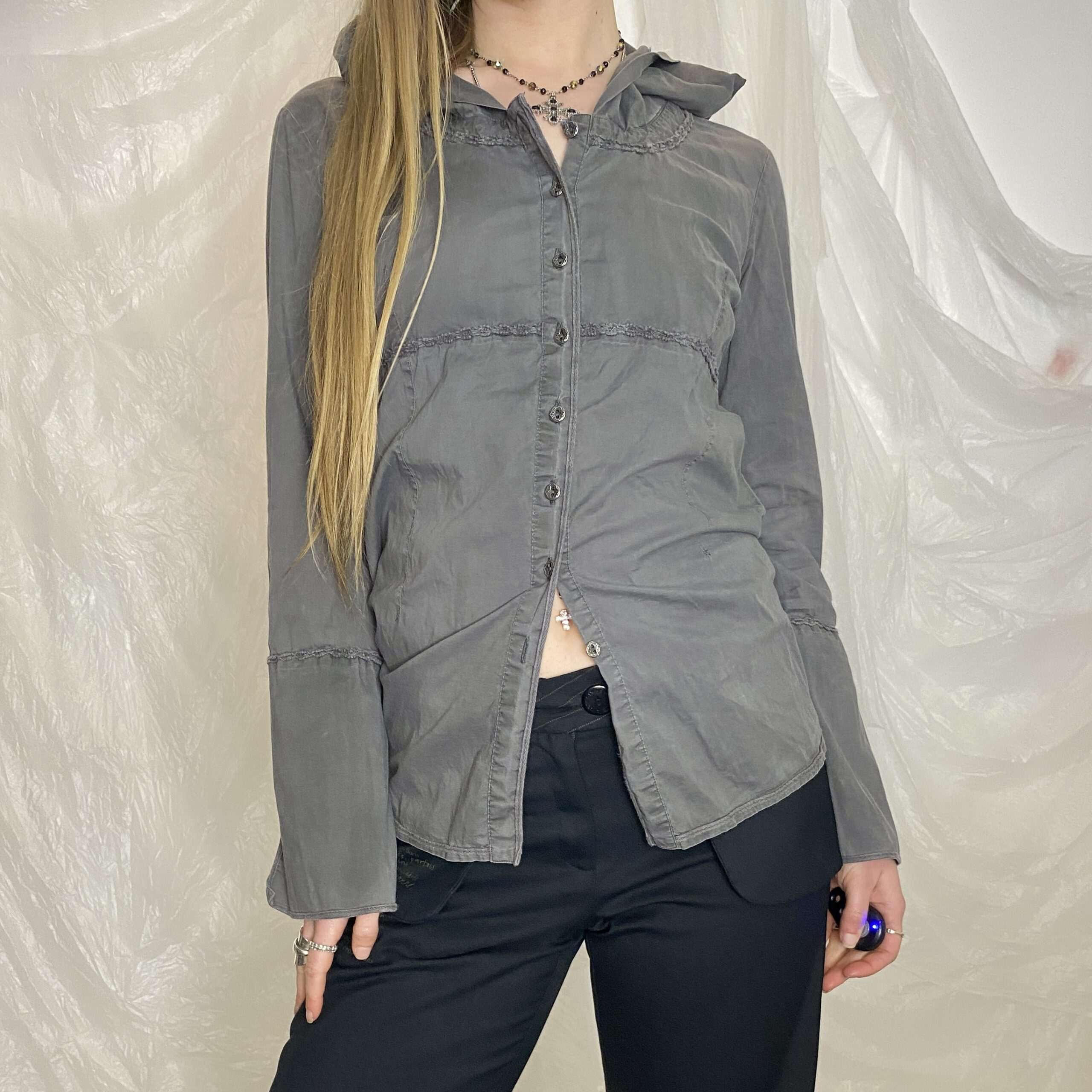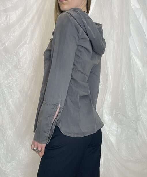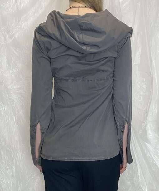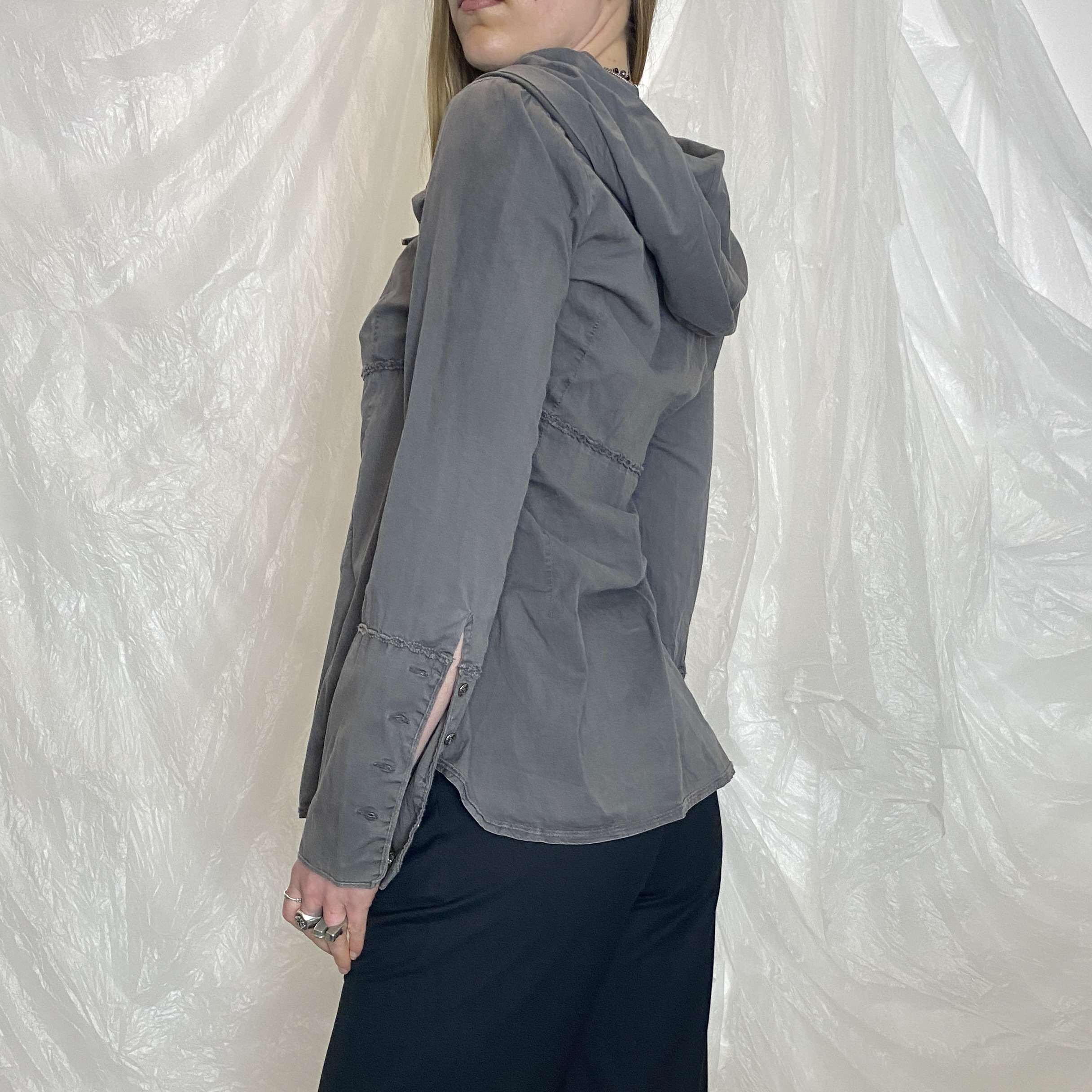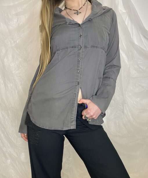 ✯ europea vintage grey button up long sleeve shirt with hood normcore twilight vibes ✯