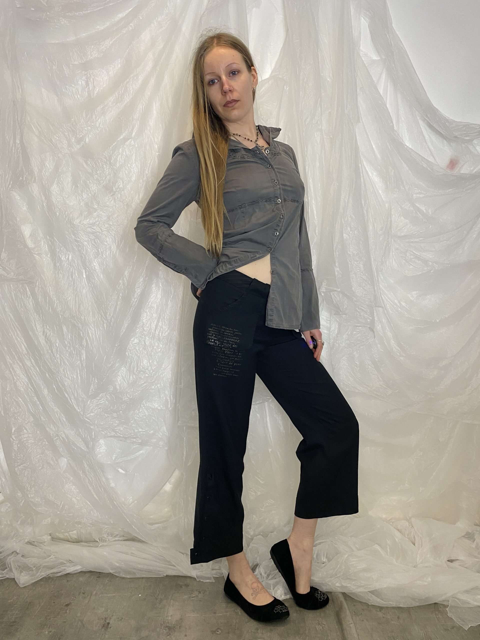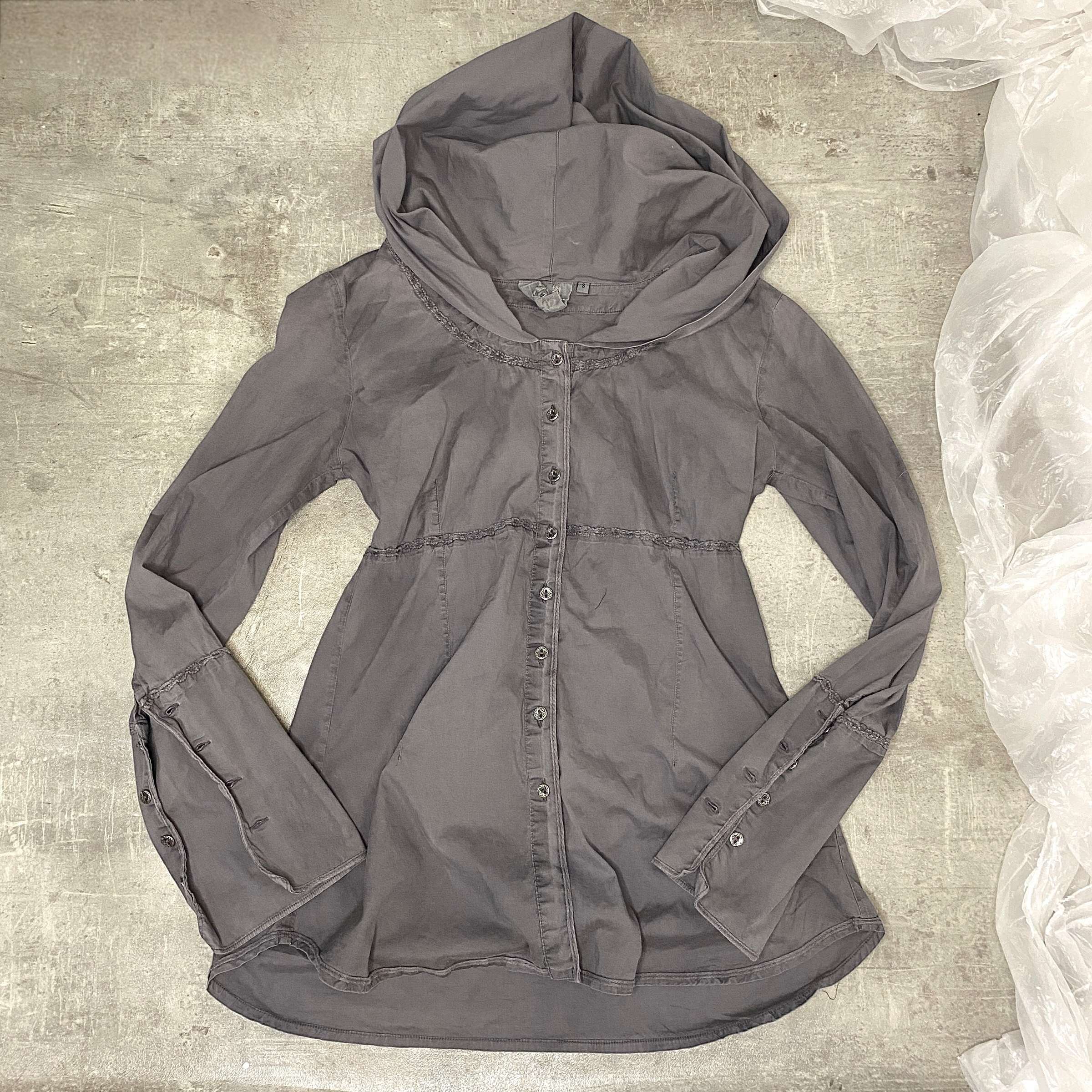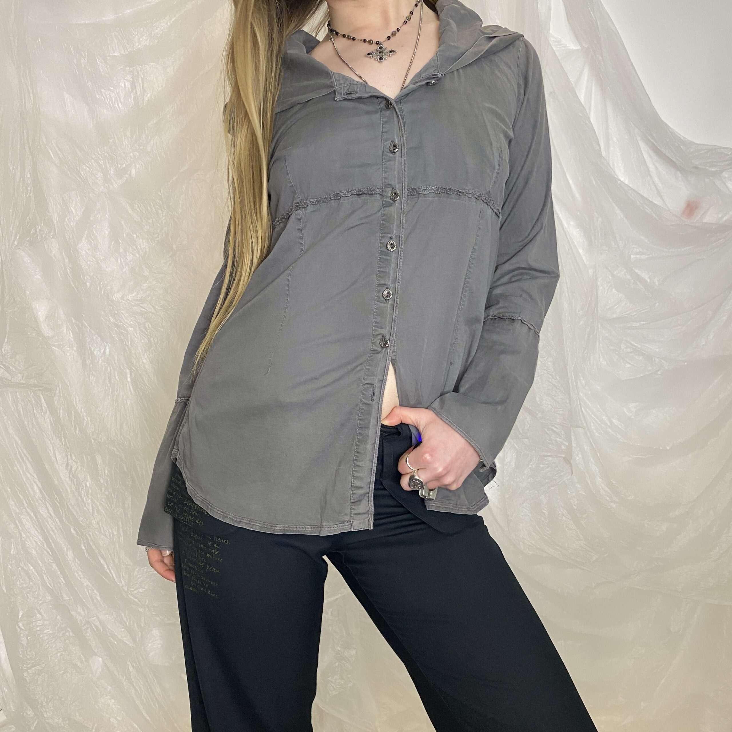 ✯ europea vintage grey button up long sleeve shirt with hood normcore twilight vibes ✯