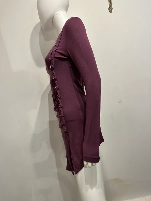 Vintage Avant Garde Purple Button asymmetrical long sleeve top (S/M)