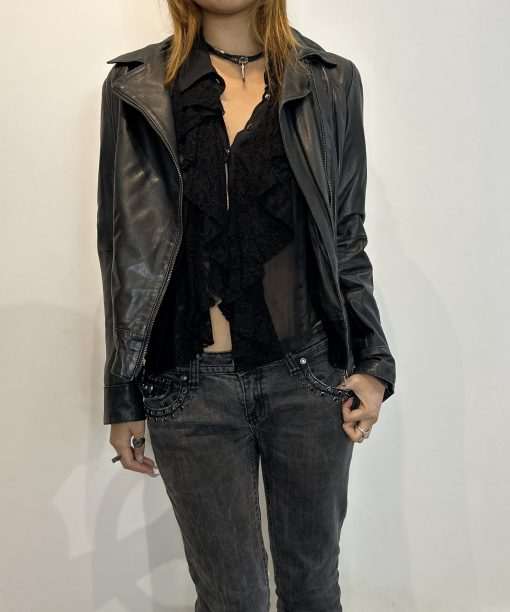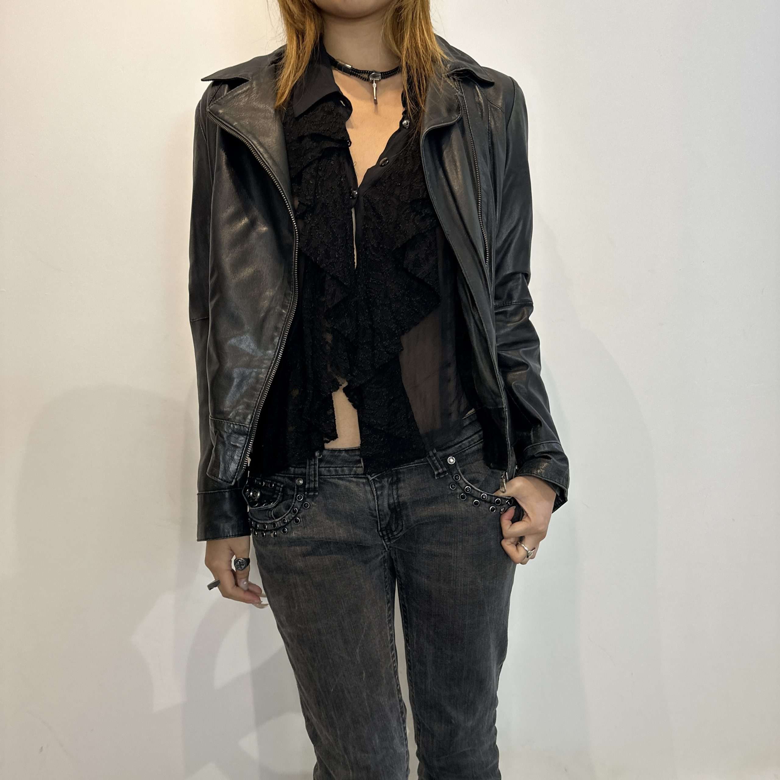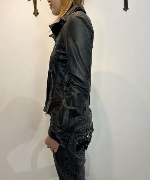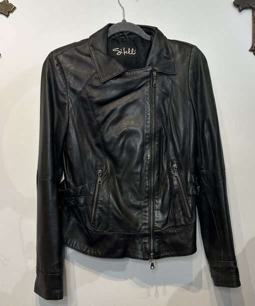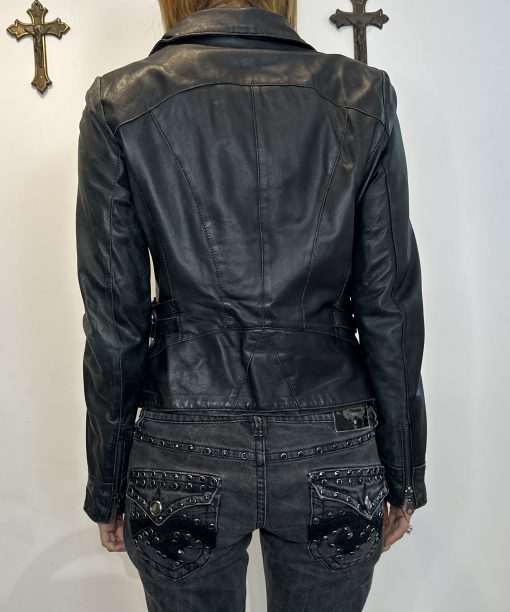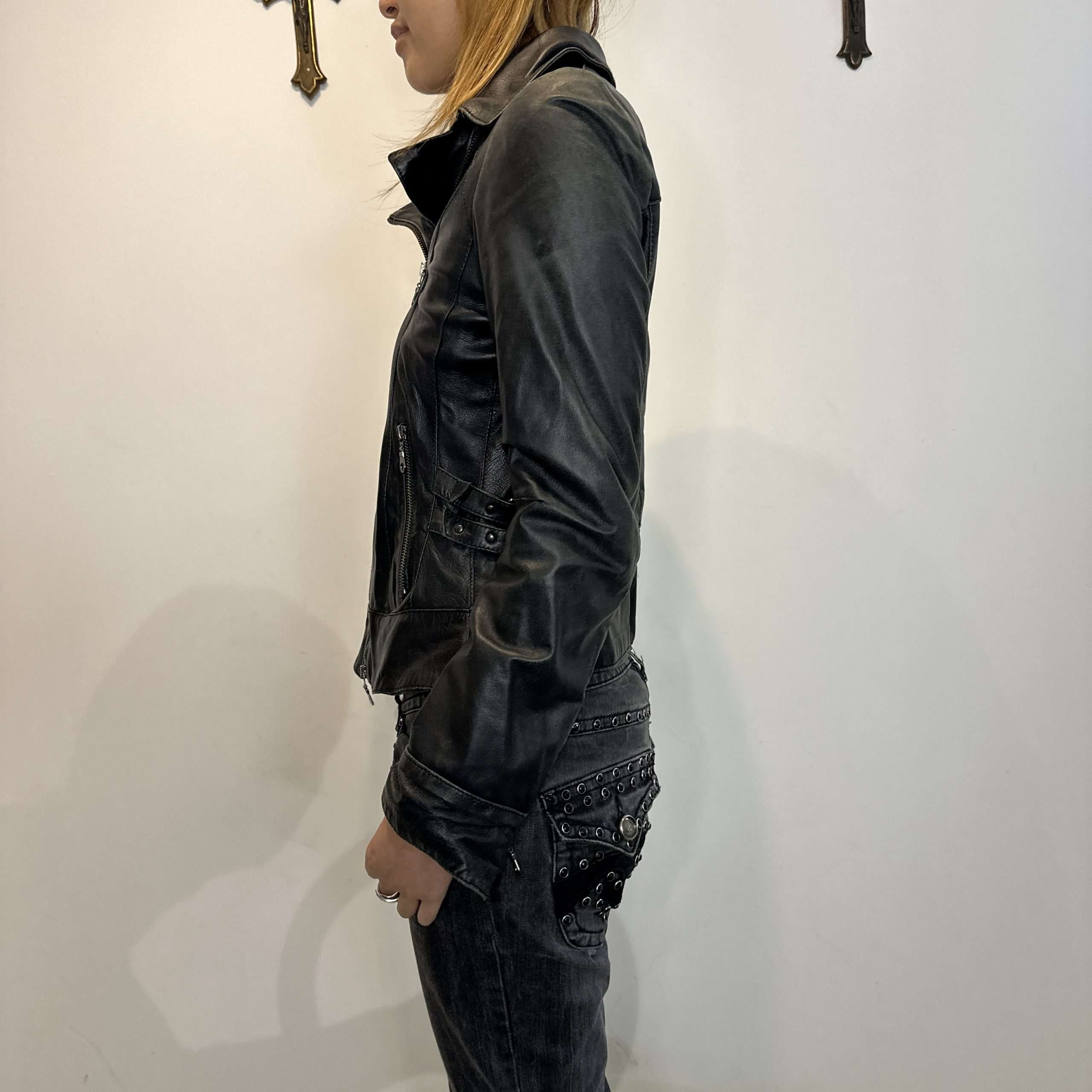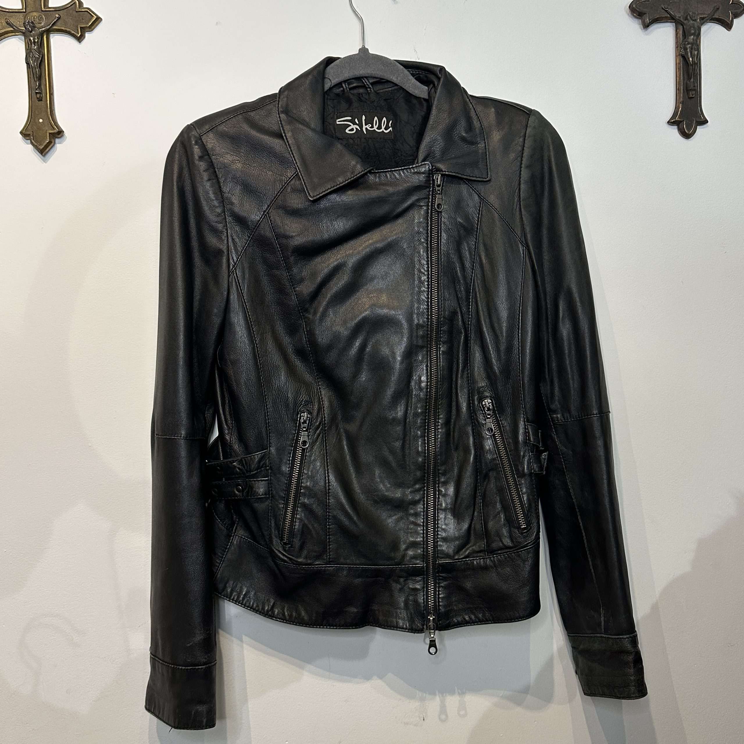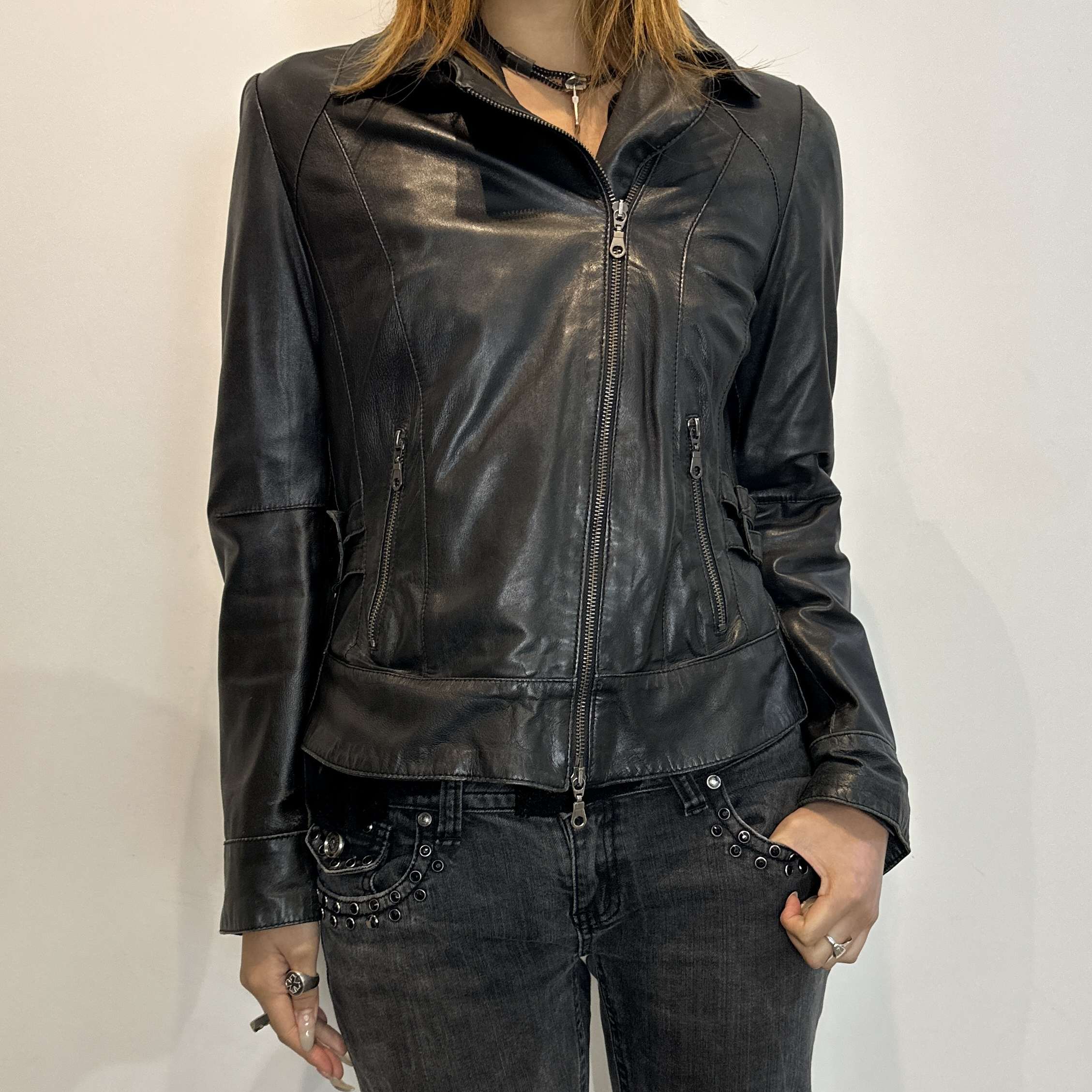 Vintage Black Asymmetrical Zip Leather Jacket (S)