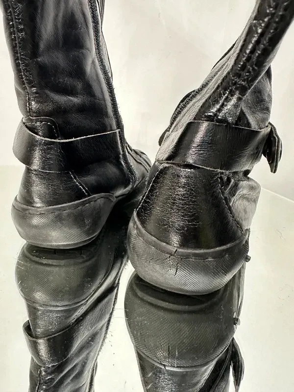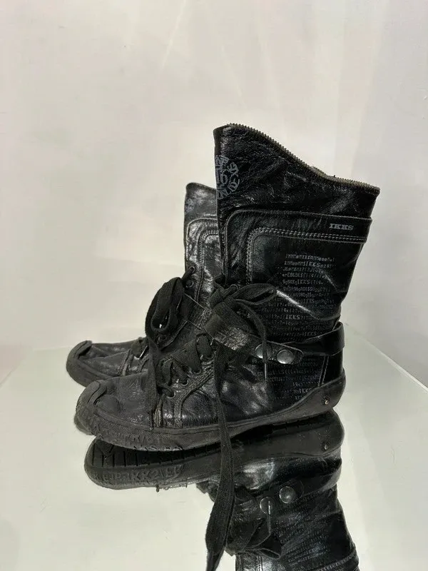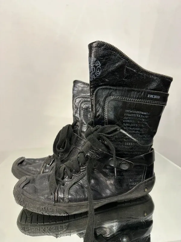 * gorgeous 90s utilitarian Parisian boxing boots with monogram digital print inside