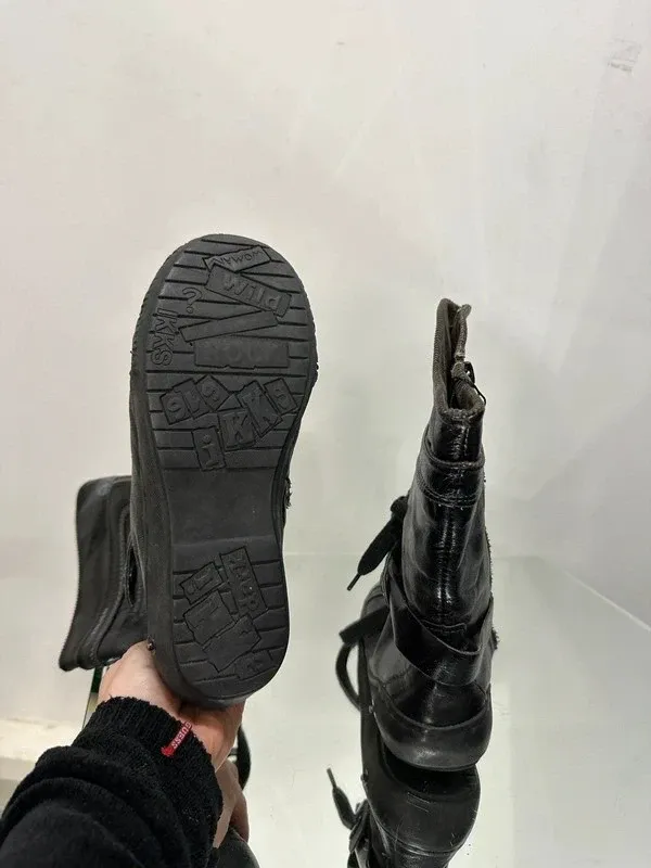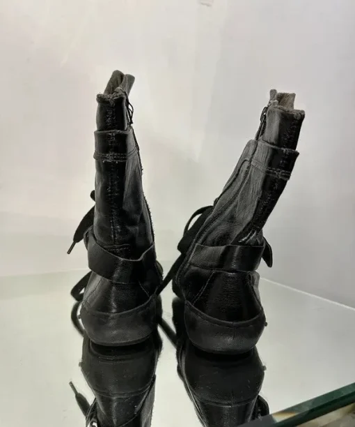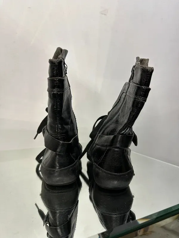 Vintage French IKKS Black Leather Lace Up Archive Utility Ankle Boots (UK 3)