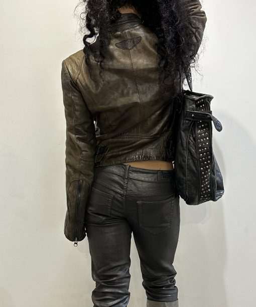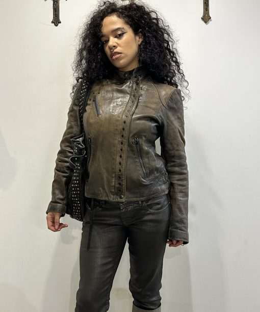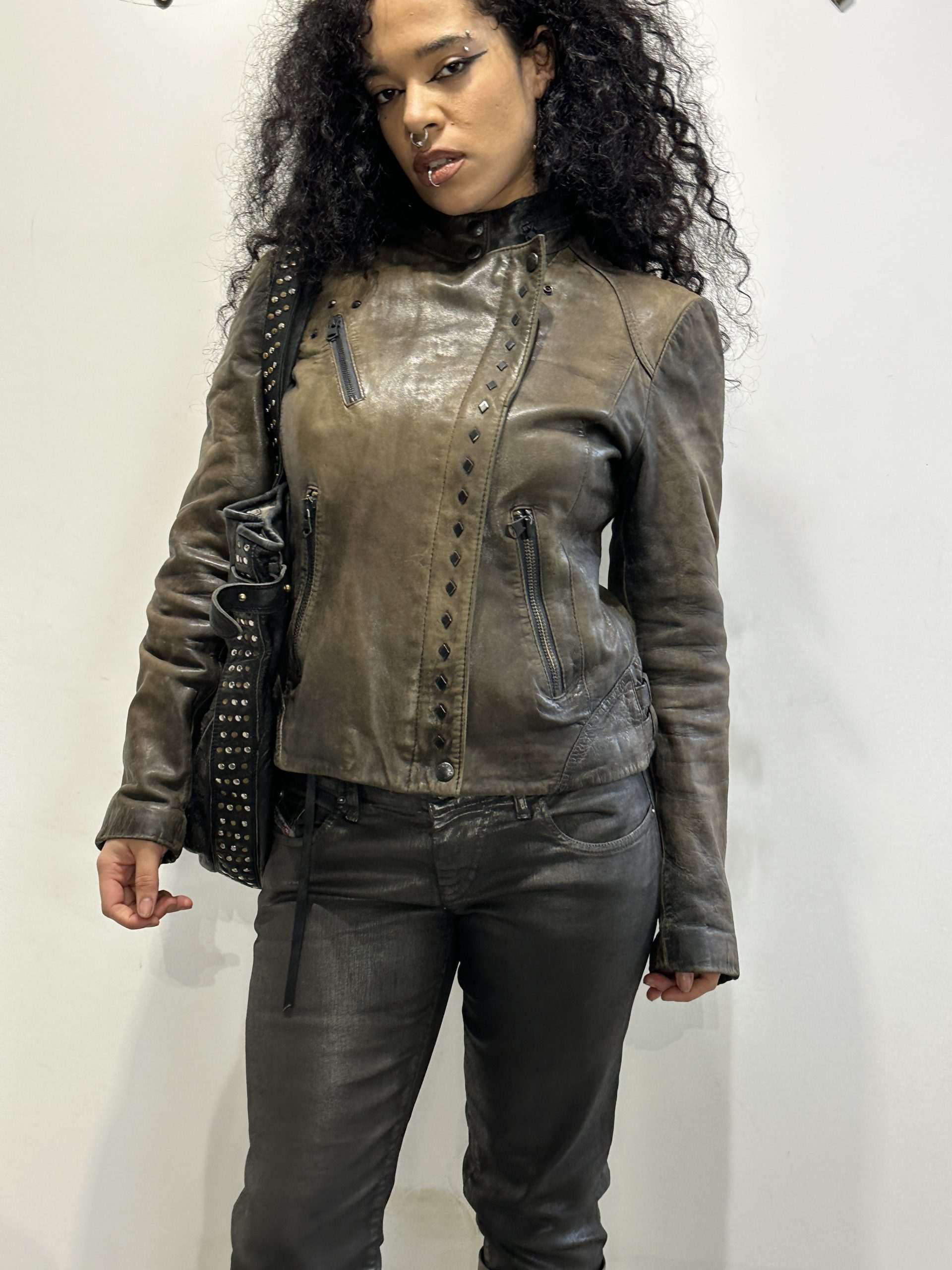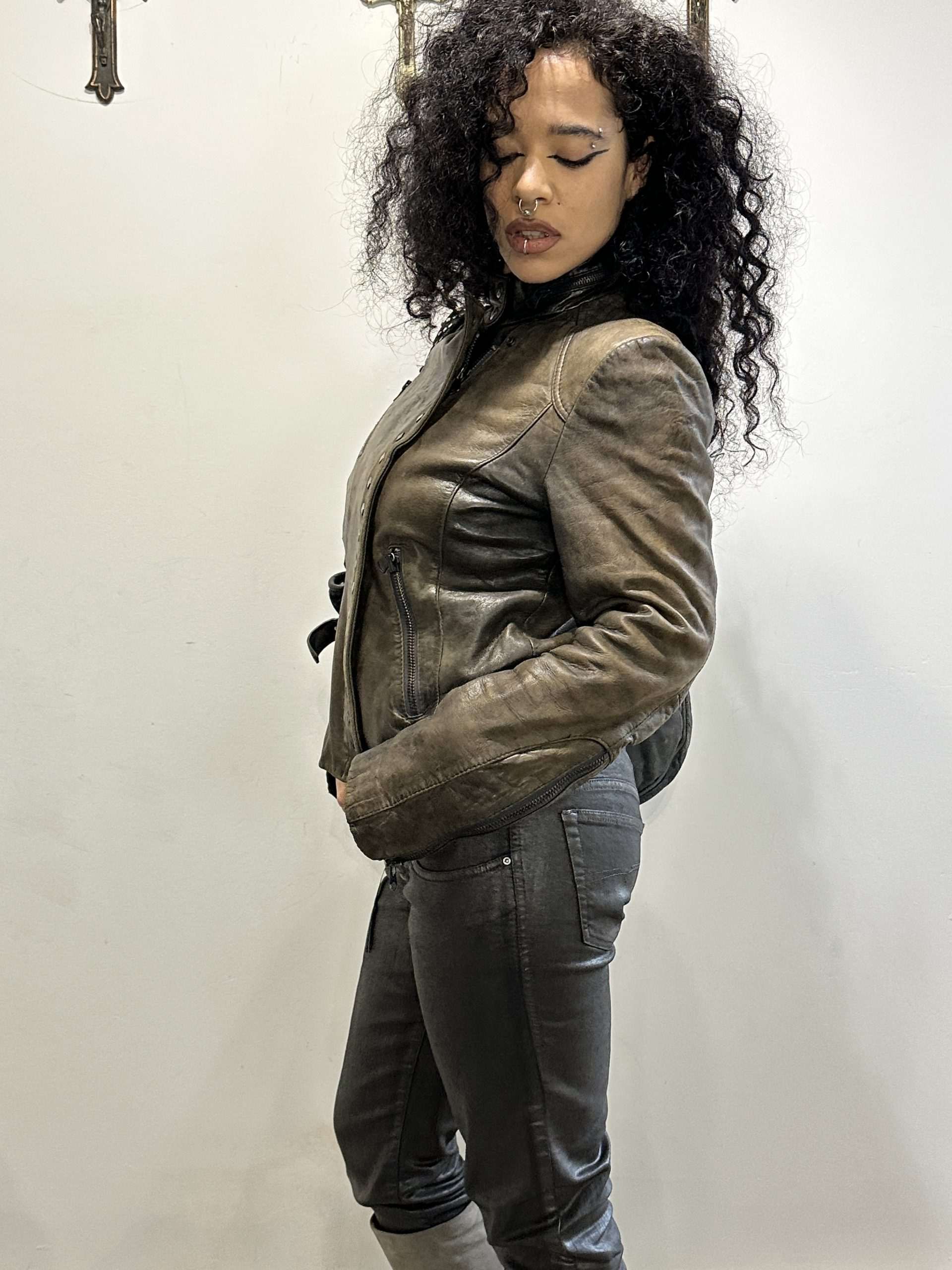 Vintage Italian Asymmetrical Zip Leather Jacket (M)