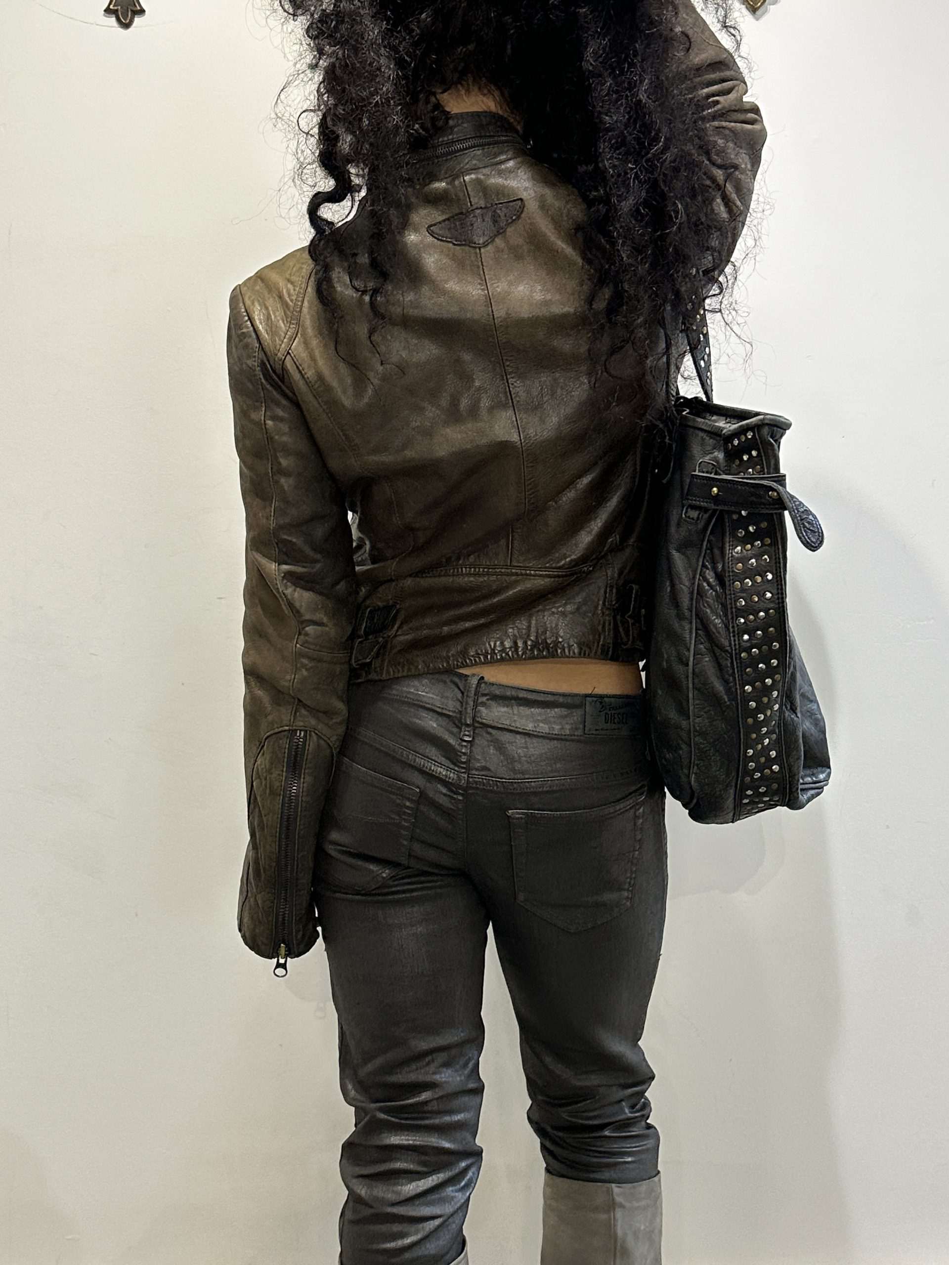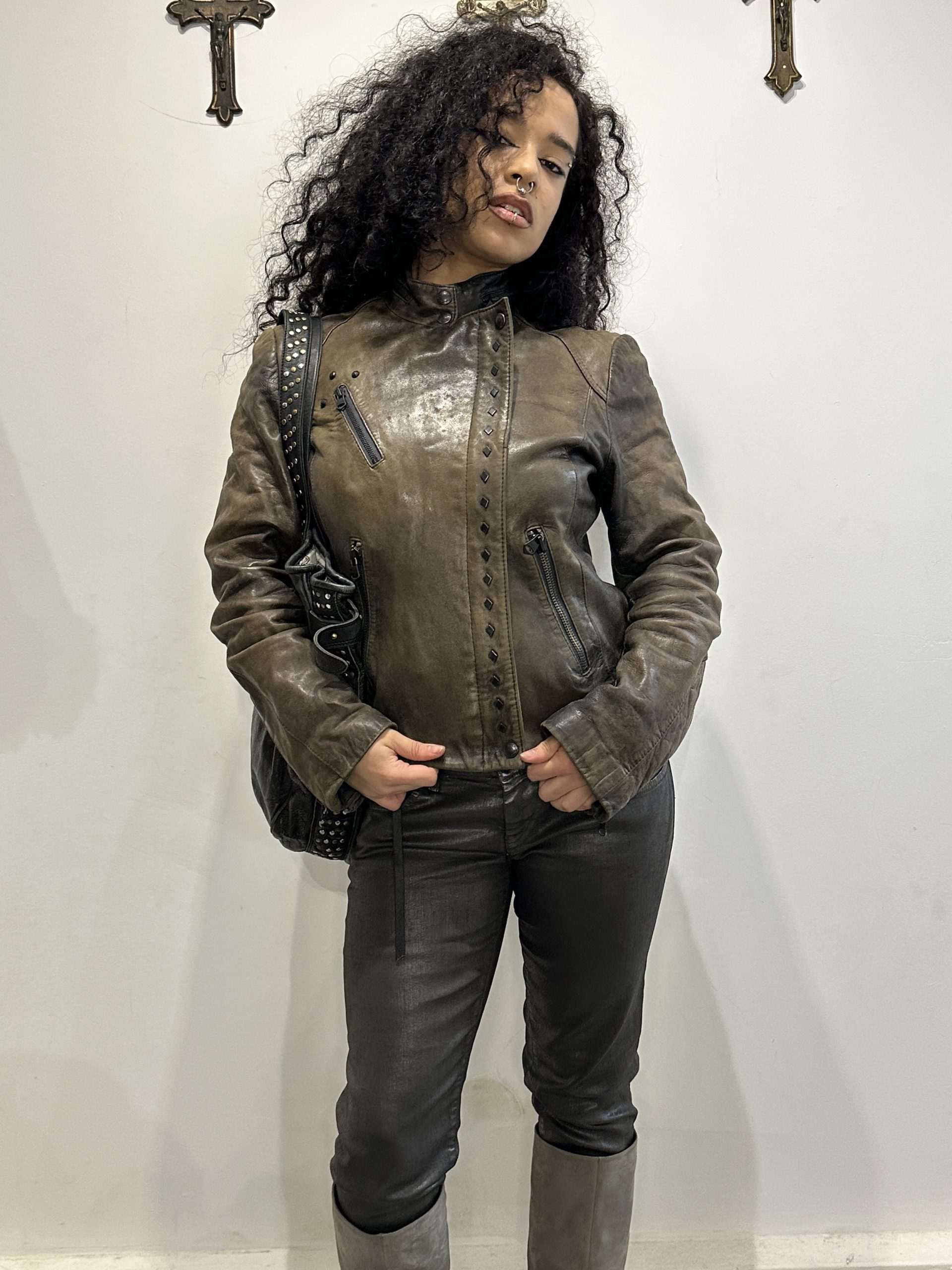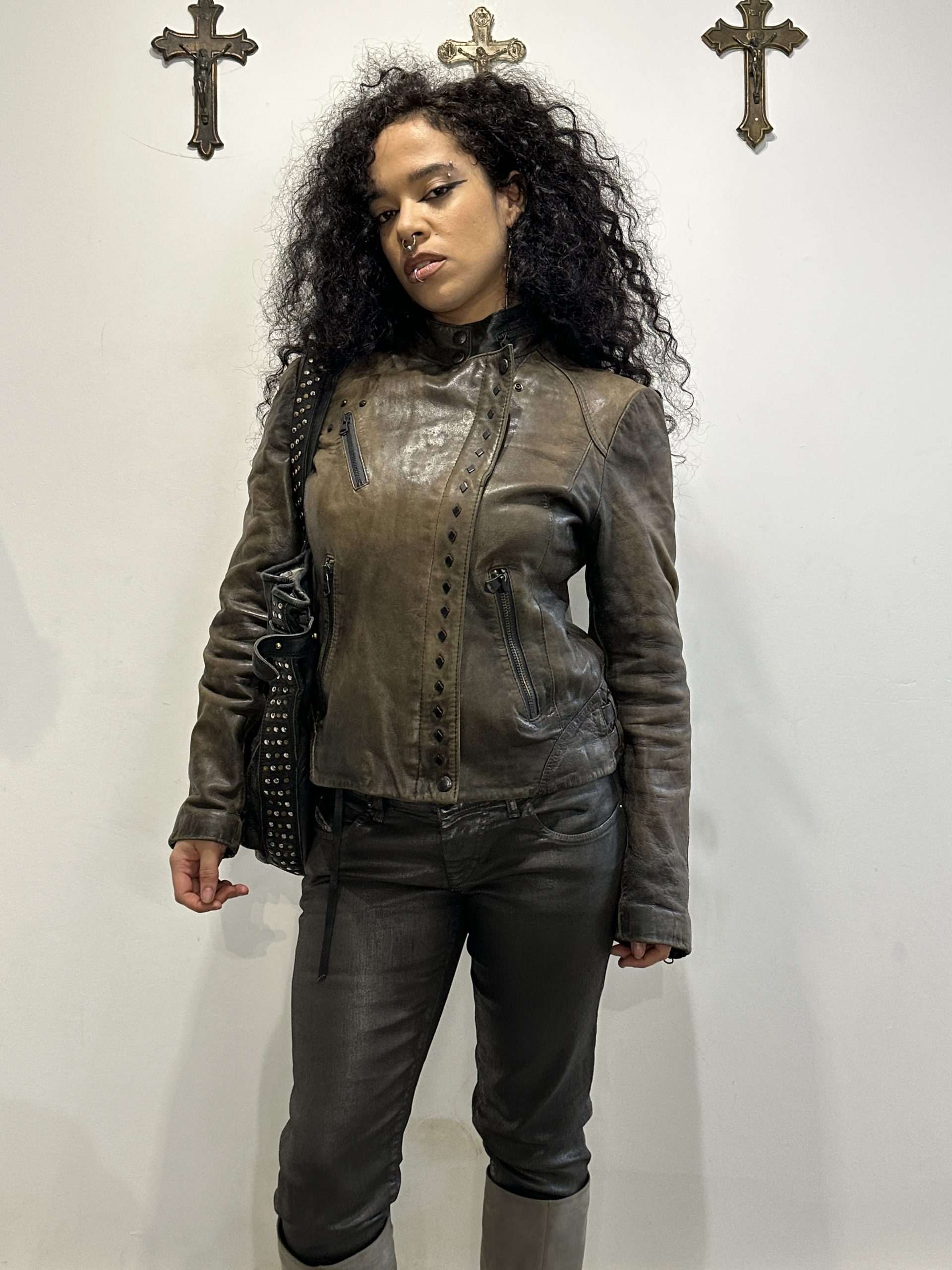 Vintage Italian Asymmetrical Zip Leather Jacket (M)