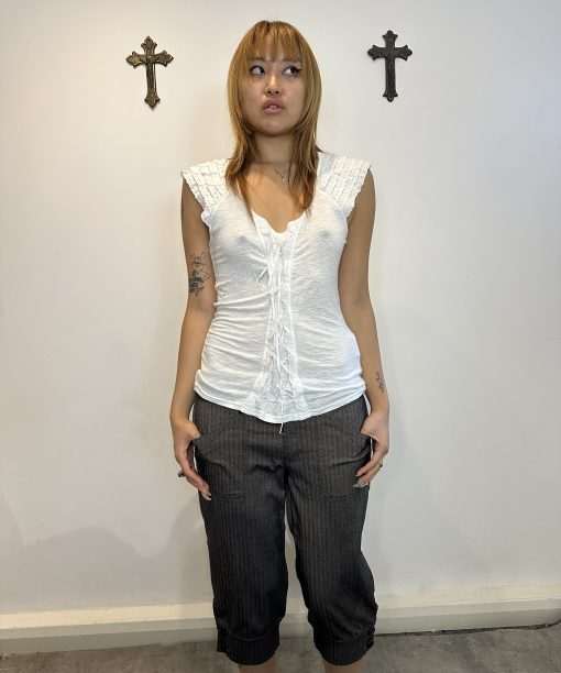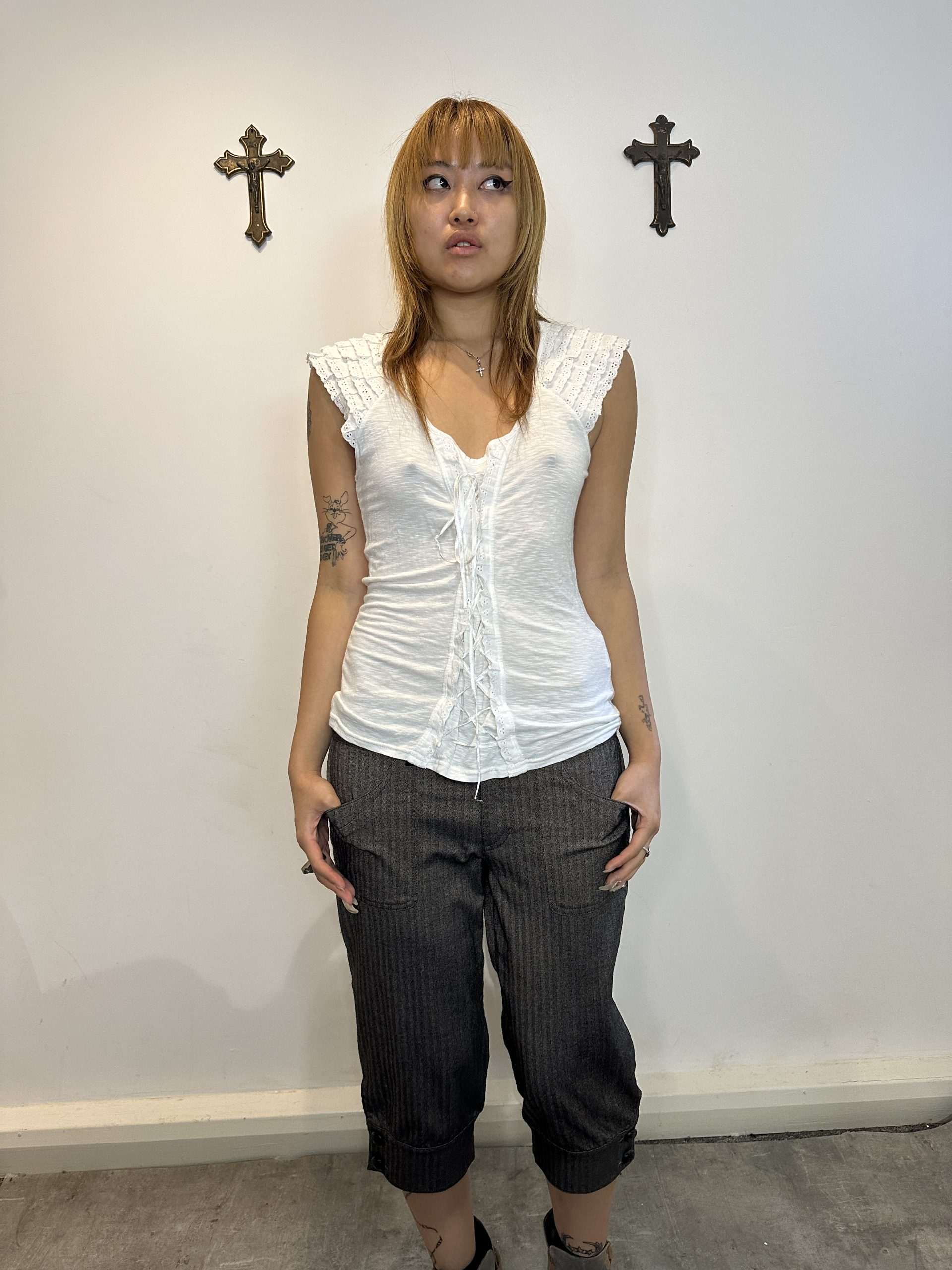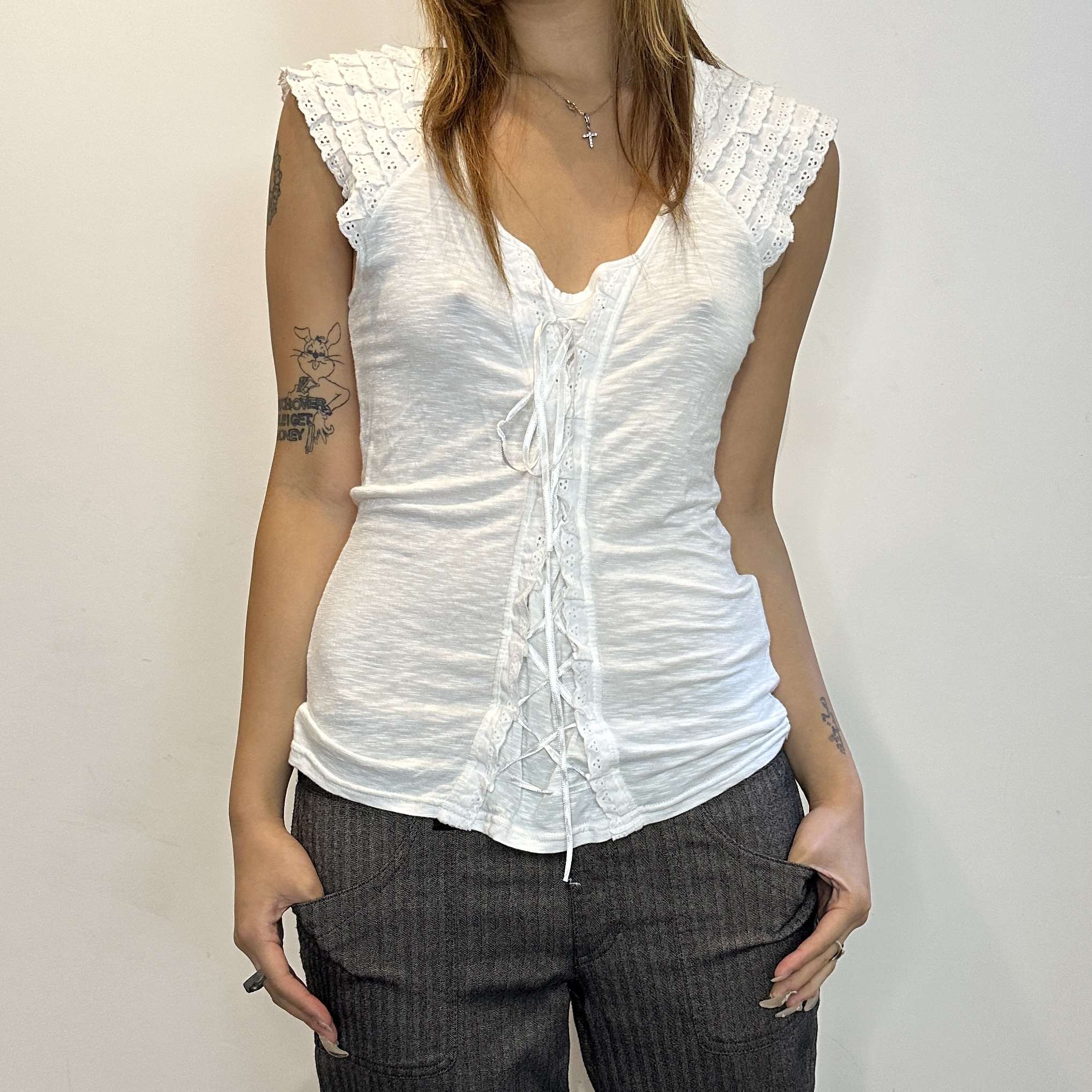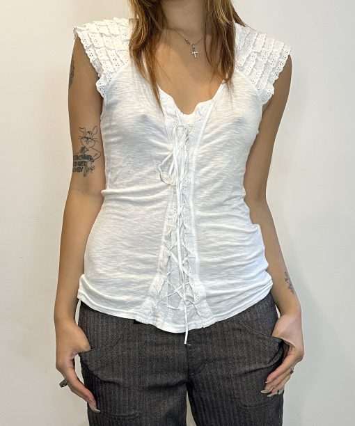 ✯ sexy lace up front coquettte milk maid top with capped sleeve✯