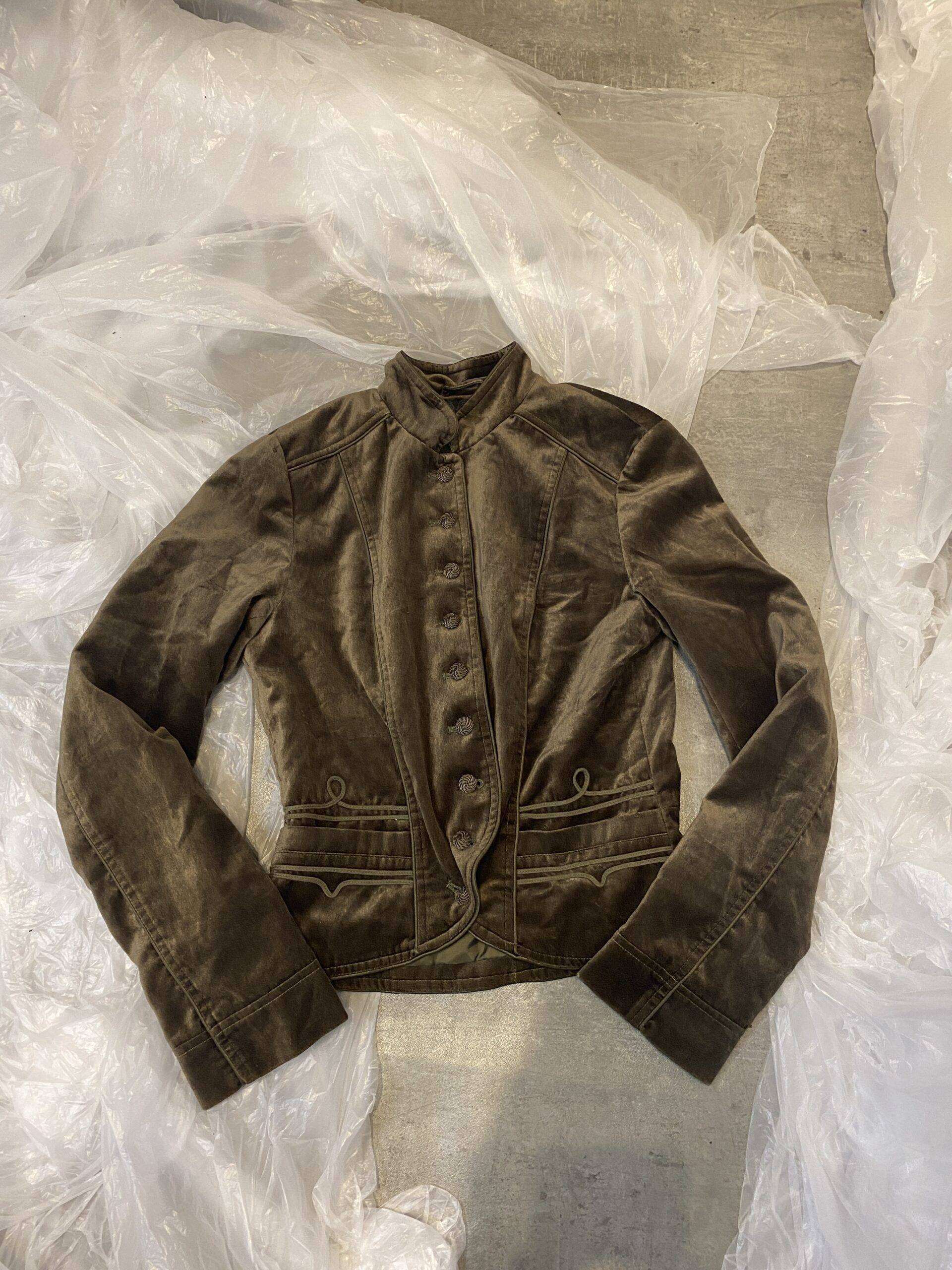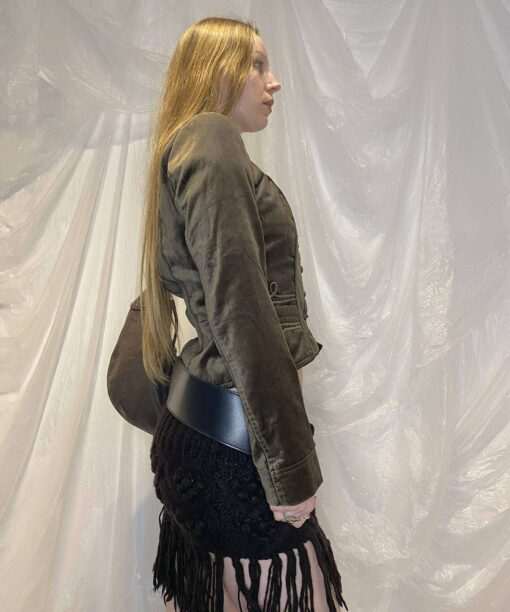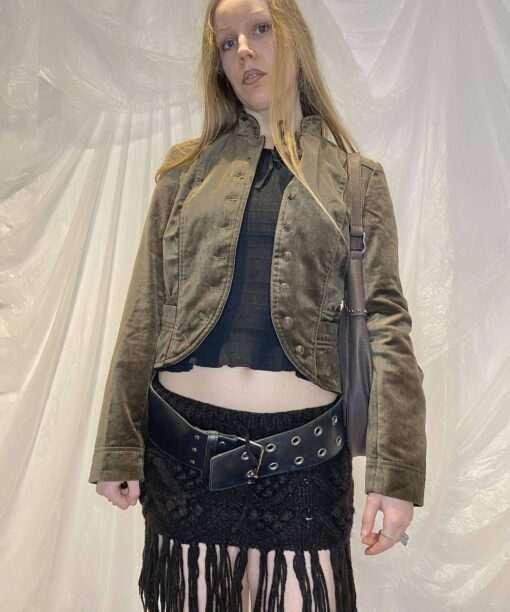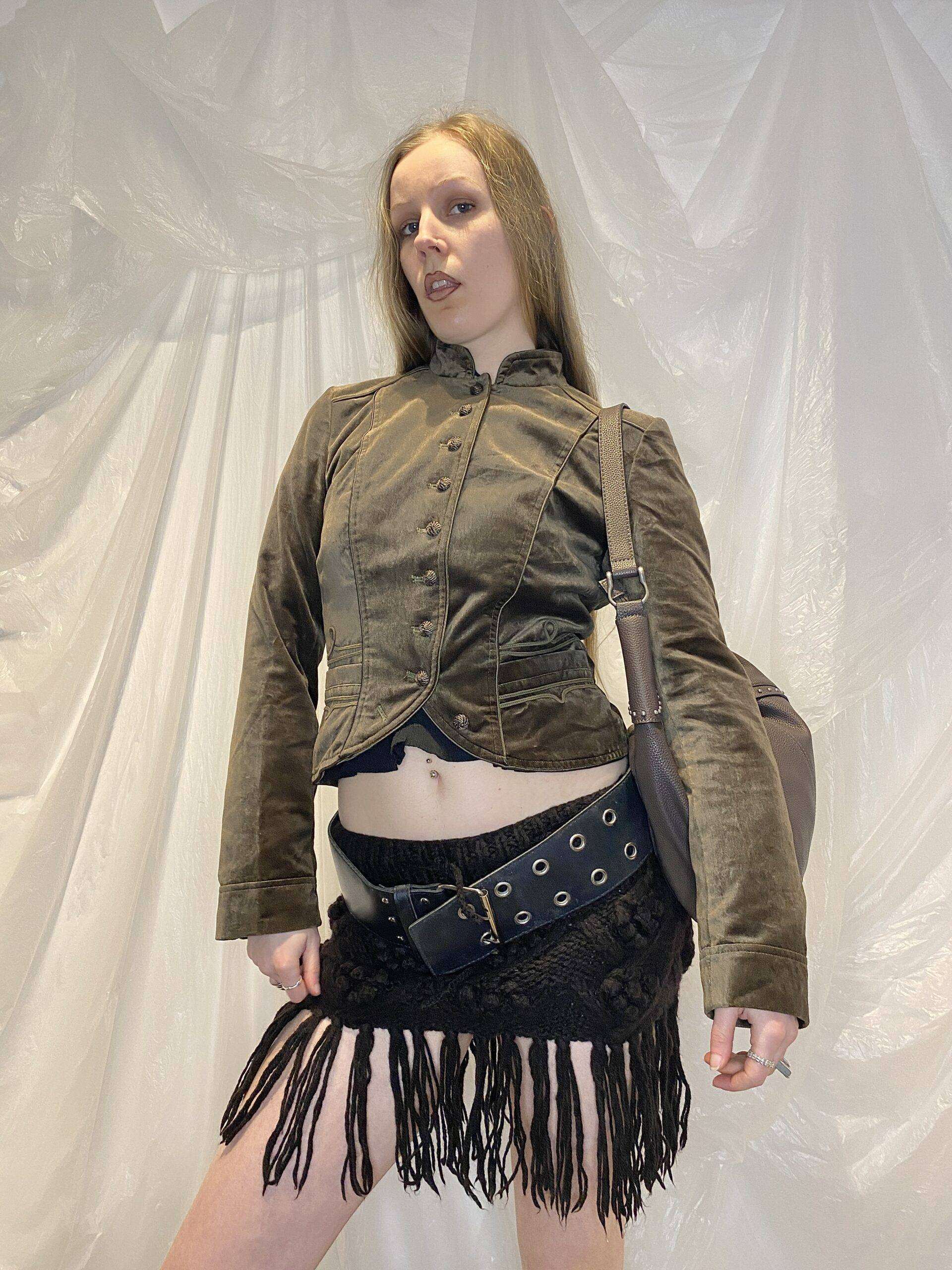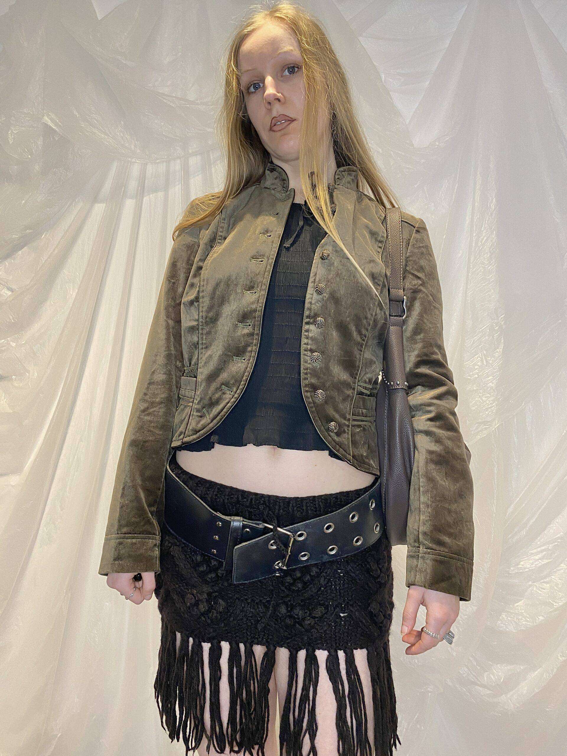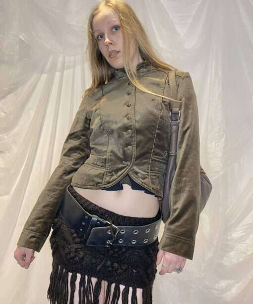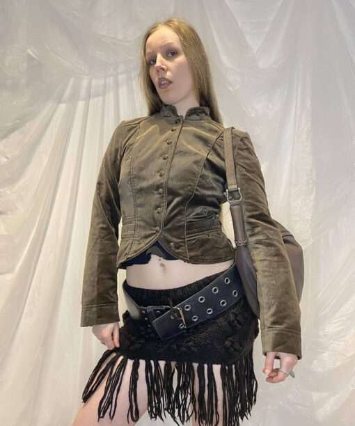 The most beautiful velour feel cropped jacket with woven buttons (comes with a spare) and front pockets. The colour is so beautiful and photos don’t do it justice.