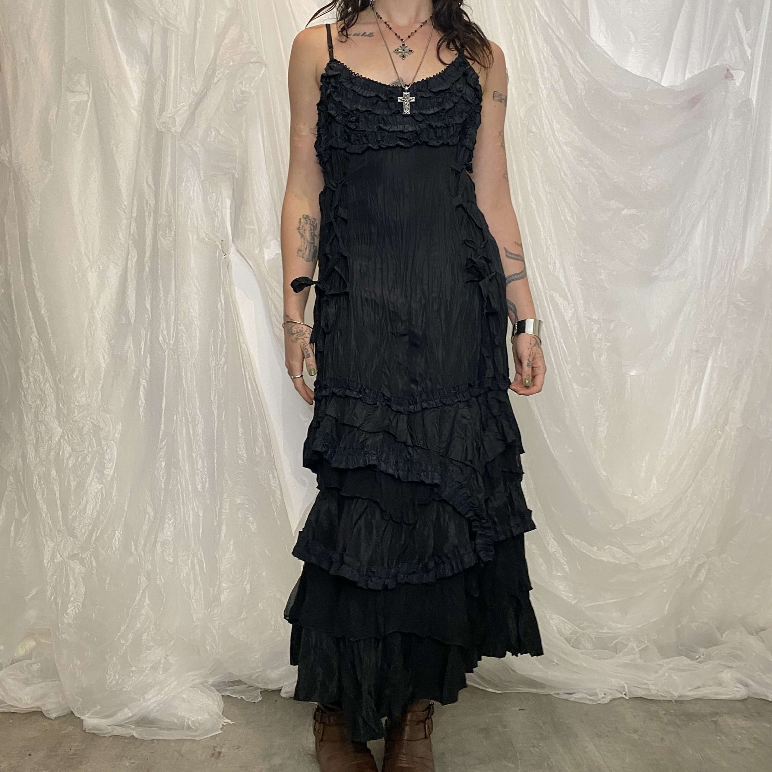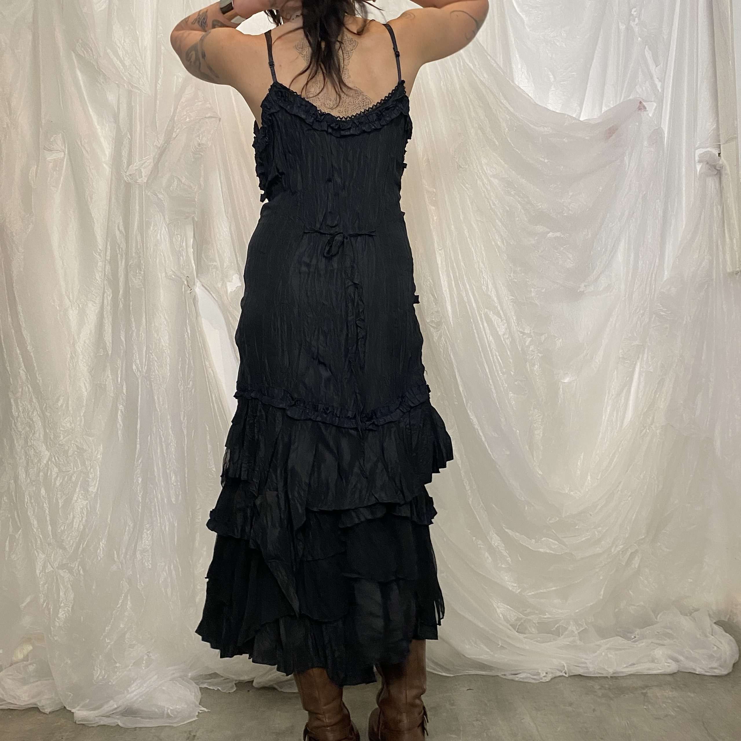 Stunning evening dress from the 2000s/90s with lace up front detail and ruffle tiered hem